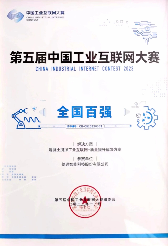 12月22日,由國家工業(yè)和信息化部主辦的第五屆中國工業(yè)互聯(lián)網(wǎng)大賽在浙江寧波圓滿閉幕,德通智能科技股份有限公司的參賽項(xiàng)目《混凝土攪拌工業(yè)互聯(lián)網(wǎng)+質(zhì)量提升解決方案》一路過關(guān)斬將闖進(jìn)總決賽,最終以第8名的成績奪得新銳組三等獎(jiǎng)。